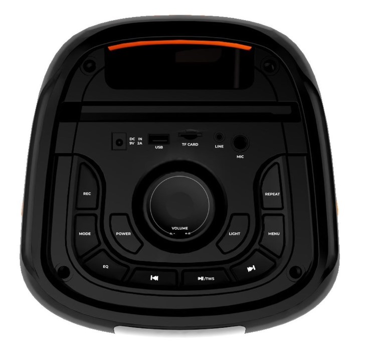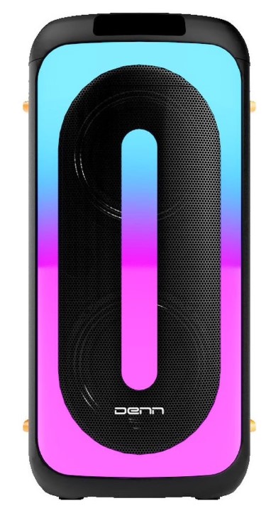 Музыкальная аудиосистема с караоке DENN STORM (DPS 125) ‒ это легкая и компактная, но мощная и яркая акустика с широким функционалом. Аудиосистема может работать, как от электросети, так и автономном режиме до 6 часов за счет встроенного аккумулятора. Корпус данной системы выполнен из прочного пластика. Мощность этой двухполосной аудиосистемы с двумя 6,5" динамиками и 2" твиттерами составляет в PMPO 400W / RMS 40W. Устройство поддерживает индивидуальную настройку высоких, низких частот. Для удобства управления можно использовать комплектный дистанционный пульт, или регулировать кнопками и колесом громкости на верхней панели корпуса. В аудиосистеме уже имеется 5 предварительно настроенных режимов эквалайзера под разные стили звучания. Аудиосистема Denn DPS125 может проигрывать как готовые плейлисты, записанные на накопители и карты памяти, так и потоковые музыкальные сервисы через функцию Bluetooth . В корпусе системы расположены слот microSD и порт USB. Также имеется функция приема радиосигнала через встроенный FM-тюнер. Особенность колонки в легкости подключения к смартфонам и планшетам по Bluetooth-каналу. Это создает условия для быстрой и простой настройки звука, а также позволяет управлять воспроизведением. Для реализации функции «Караоке» модель укомплектована беспроводным микрофоном высокого качества, который уже сразу подключен к аудиосистеме, достаточно вставить в него батарейки. Также в системе имеется дополнительный микрофонный вход, через который можно подключить еще один микрофон (для любителей петь дуэтом), или использовать его для подключения электрогитары. Громкость звучания и эффект "эха" у микрофона можно регулировать отдельно от общего звука. Аудиосистема оснащена яркой, динамичной, многоцветной подсветкой, которая имеет различные режимы цветовой заливки. Подсветка может динамично пульсировать в такт звучащей музыки, создавая световое шоу, что делает аудиосистему DENN STORM центром Вашей вечеринки.