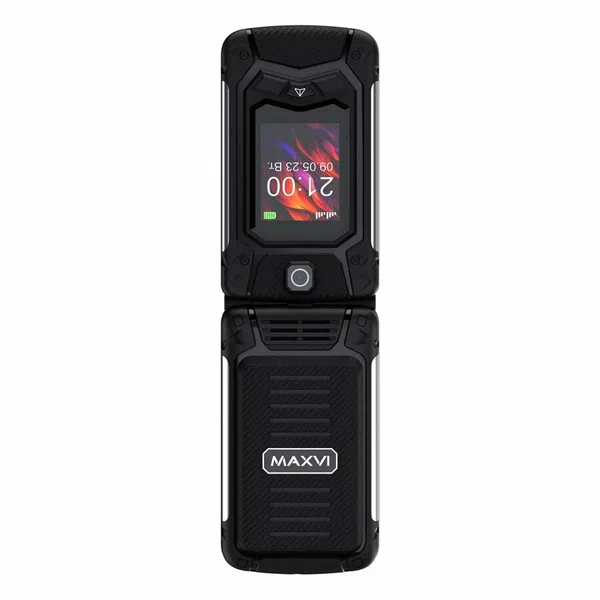 Maxvi E10 - брутальный телефон в форм-факторе раскладушка с дополнительным внешним дисплеем, на котором отображаются время и уведомления. Аппарат имеет средний уровень защиты от воздействия воды и пыли. Maxvi E10 - функциональный телефон с емким аккумулятором (2000 mAh) и громким динамиком.